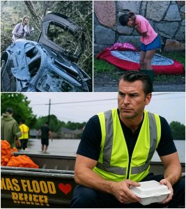 Hegseth’s journey from fame to this flood-ravaged front line was rooted in a paternal instinct sharpened by his own life as a father of seven. Watching aerial footage of submerged homes and stranded families from his studio desk, he felt a visceral pull—a reminder of his deployments in Iraq and Afghanistan, where helplessness was the enemy. By October 3, as Hurricane Lydia’s aftermath left over 150 dead and billions in damage, Hegseth had already begun mobilizing. He tapped his network of veterans and donors, amassing water filters, non-perishables, and cash in record time. Over the next 72 hours, his efforts snowballed: $150,000 in the first day for immediate aid, followed by partnerships with local churches to distribute tents and medical kits. Not one press release issued; instead, Hegseth worked the phones from a folding table, coordinating drops to isolated communities in Kerr and Hunt Counties. His role as a father infused every decision—prioritizing baby formula and diapers, items that spoke to the human cost beyond headlines.