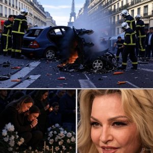 The incident occurred late last night at a busy Parisian intersection, when Madonna’s sleek black limousine reportedly collided head-on with a taxi. Eyewitnesses described scenes of chaos and horror as emergency sirens pierced the night, and medics scrambled desperately to save the global icon whose music had inspired generations.