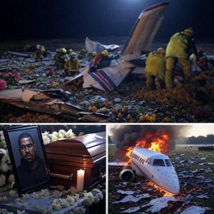 In a fiery inferno outside Atlanta, Kanye West’s private jet erupted into flames, claiming the life of the controversial music titan in an instant that shattered the world. Fans, stunned into silence at first, soon flooded the airport perimeter, their faces twisted in raw grief—tears streaming as they clutched phones, whispering prayers for the man who redefined hip-hop with beats that pulsed like heartbeats. The crash, mere minutes ago, turned a routine flight into tragedy, leaving rescuers sifting through twisted metal amid acrid smoke. West, ever the polarizing force, leaves behind a legacy of genius laced with chaos, prompting whispers: Was fame’s spotlight too scorching? As authorities probe the cause, one question haunts: What unfinished fire did Ye take to the grave?