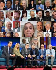 Colbert’s voice cracked with emotion as he recited her words—no jokes, no cuts to commercial. The audience sat in stunned silence; the usual applause never came. He highlighted passages accusing 16 figures (though specifics in the book often used pseudonyms or broad descriptions for legal reasons), emphasizing her final warning: “You can bury evidence, but not memory. Memory doesn’t rot; it waits.” The segment ended with Colbert looking directly into the camera: “This isn’t comedy tonight. This is what they didn’t want heard.”