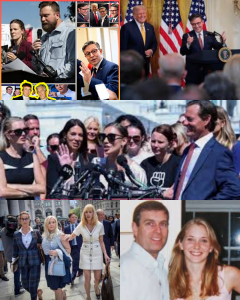 Giuffre’s mother speaks first, her voice cracked but unwavering. “You’ve seen the evidence. You’ve read the files. You’ve heard our pain. Now prove you serve justice, not the powerful.” Her words slice through the Capitol air like a verdict. On Johnson’s desk lie hundreds of pages of sealed testimony — Epstein’s hidden empire of names, connections, and crimes shielded by redactions. To unseal them would expose the faces behind decades of silence: princes, politicians, financiers, and the enablers who thought wealth could erase sin.