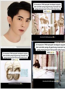 Viral images depict the scene: hundreds of footwear pieces swaying like lifelines cruelly snipped, evoking abortion, loss, or violent severance. Side-by-side comparisons online match certain pairs to Yu’s known styles, with scuffs and designs eerily similar. Wilder claims link the exhibit to bloodied jackets or relics from other stars’ demises, suggesting a “victim trophy” theme hidden in plain sight.